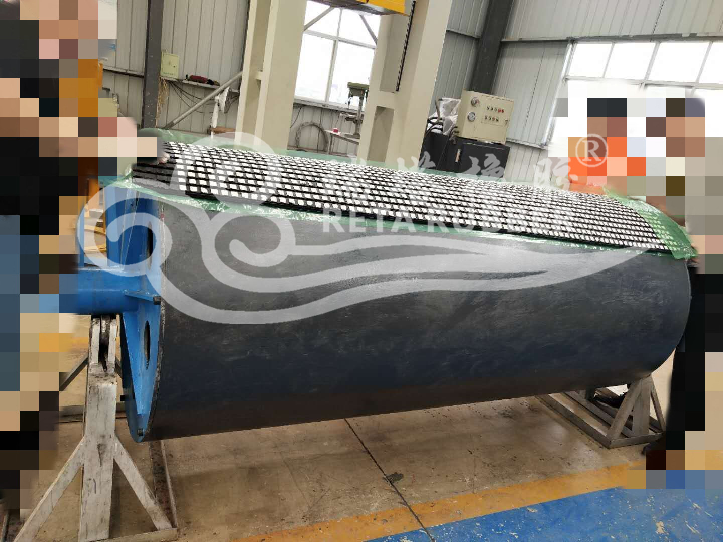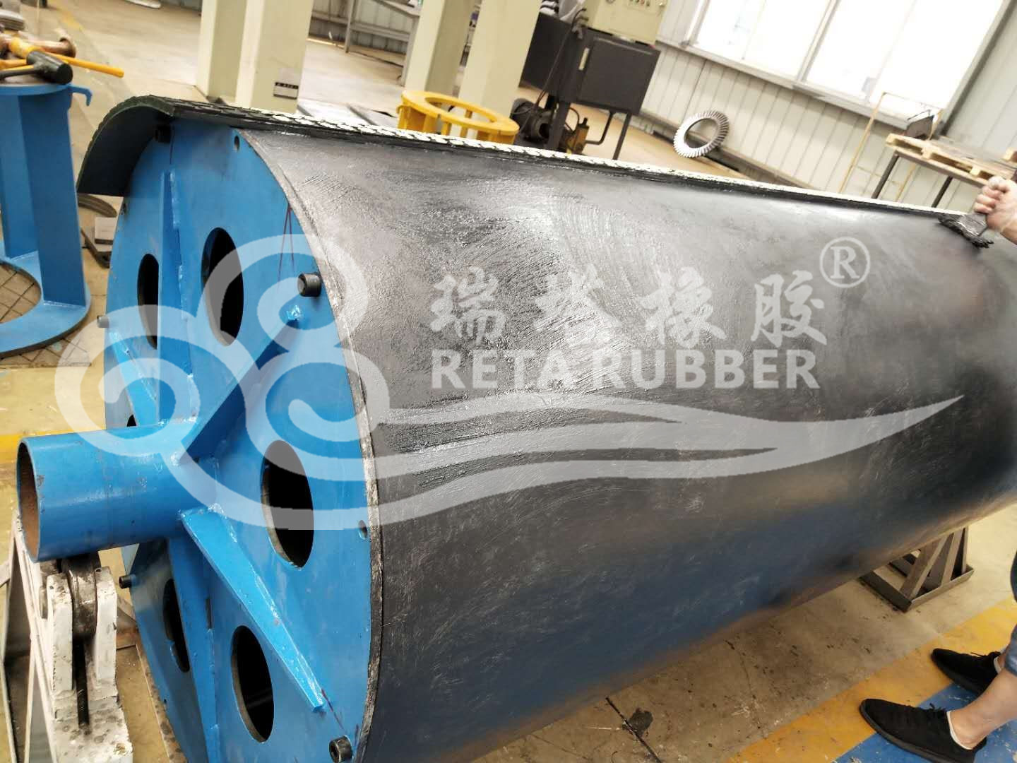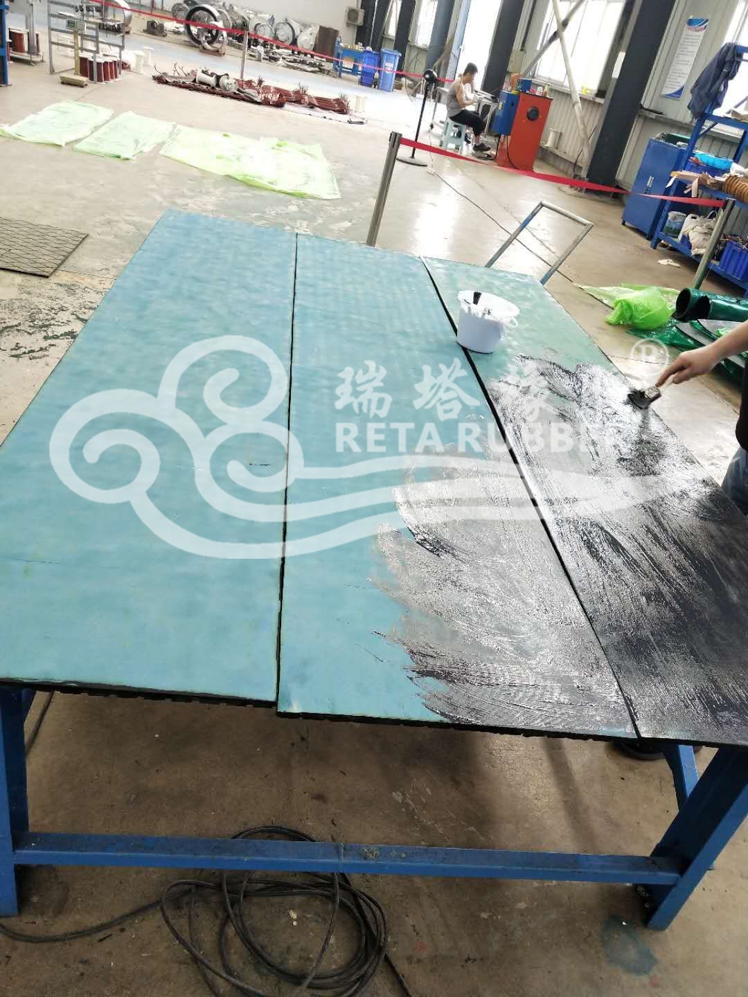 皮帶三隊滾筒陶瓷包膠現場施工