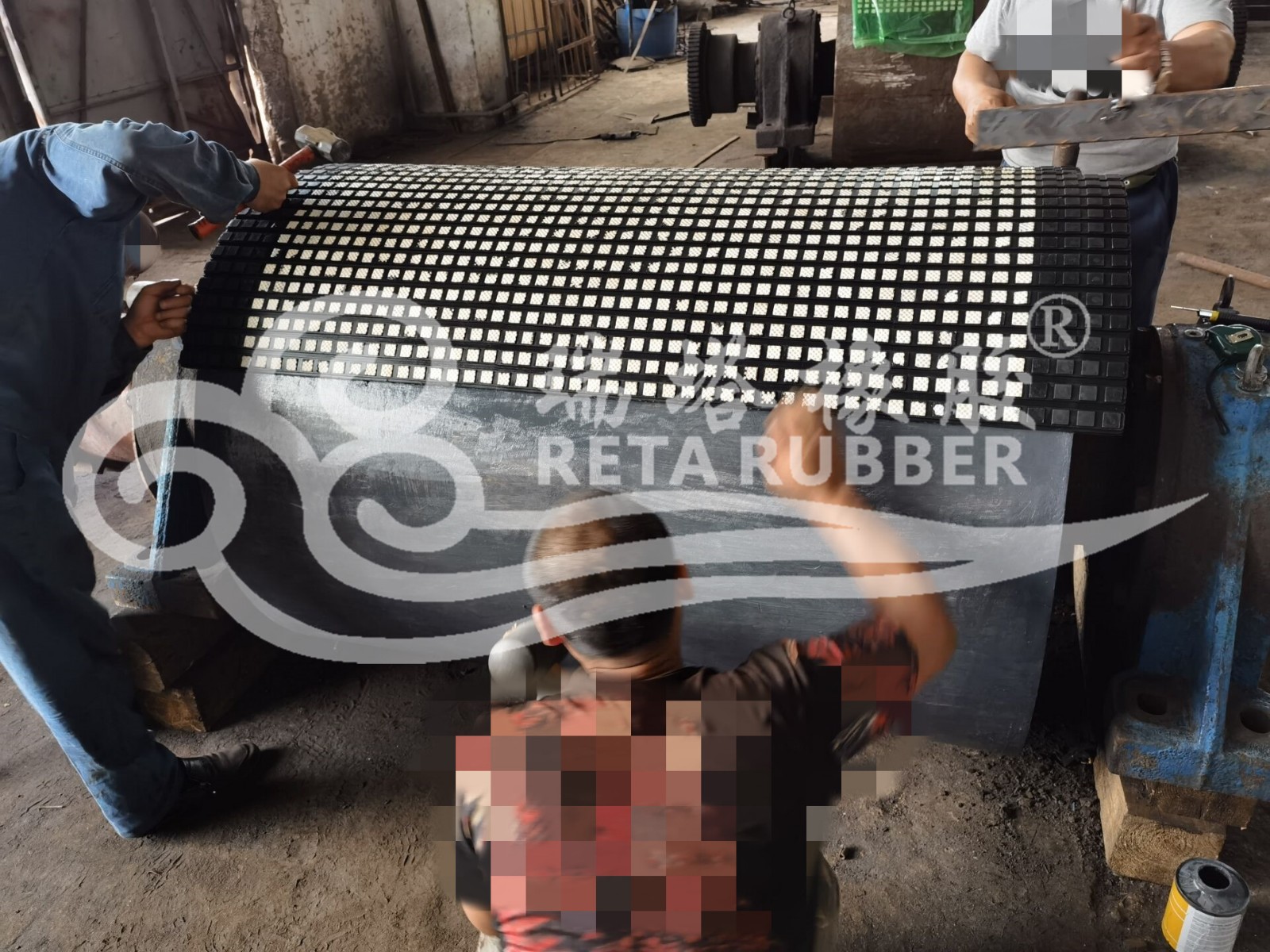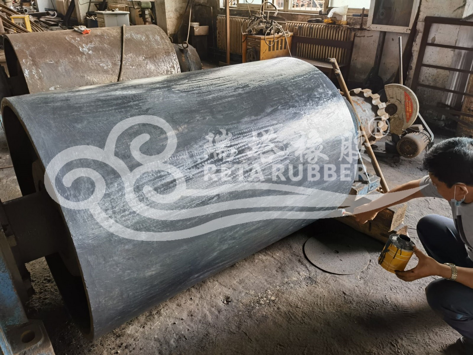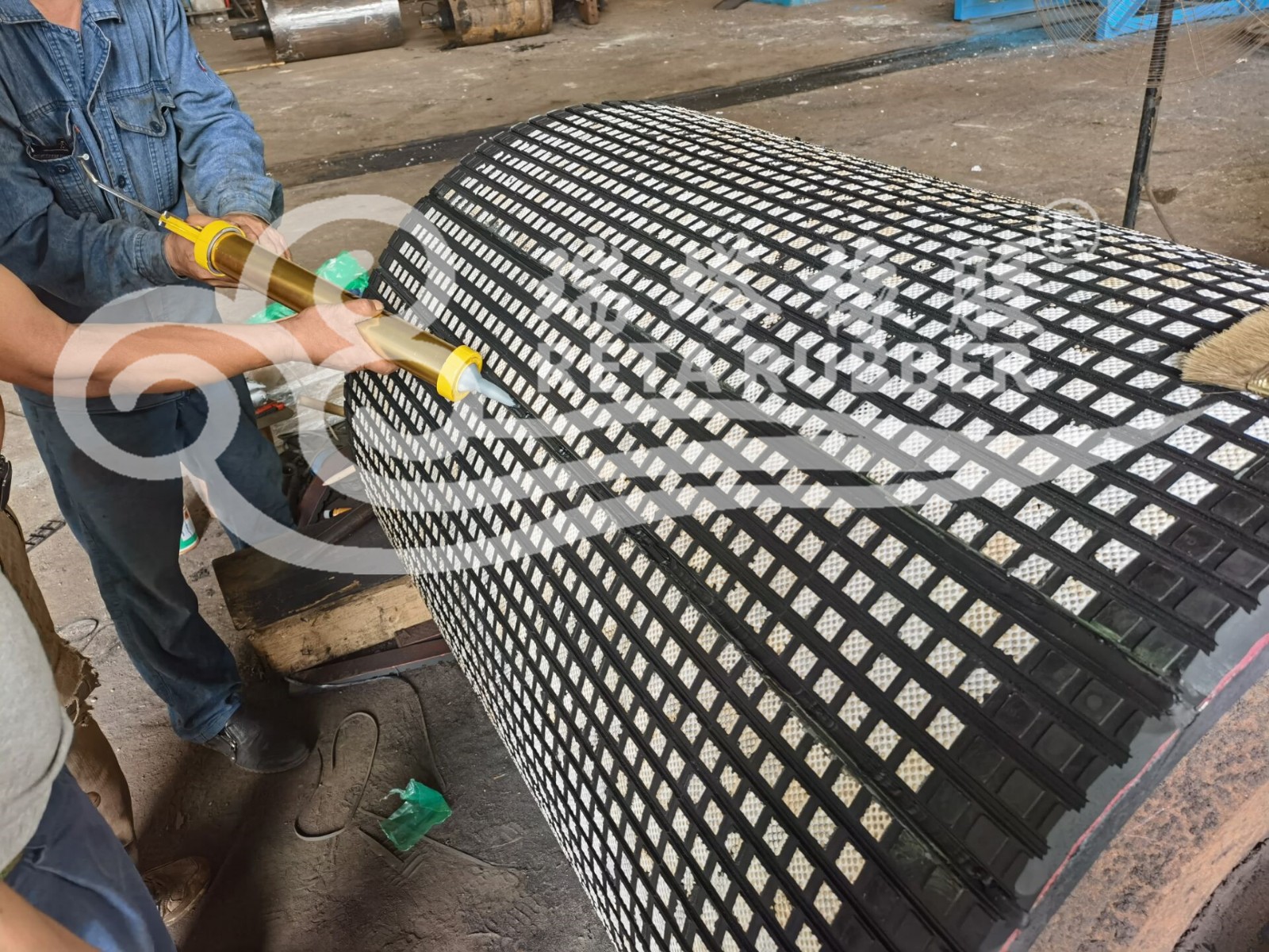 輸送機廠滾筒陶瓷包膠現(xiàn)場施工
